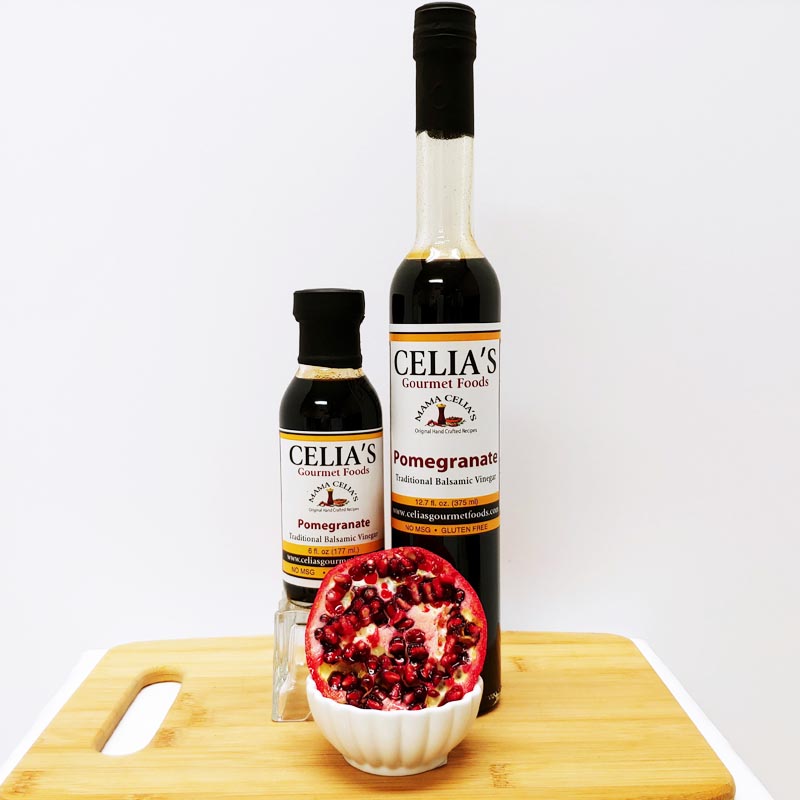 Sweet and refreshing pomegranate flavors our dark balsamic to be perfect over grilled chicken, salads or bowls of fresh berries and whip cream. Also great with fresh green salads and perfect with aged cheeses!